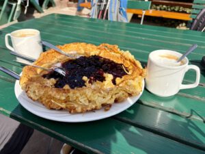 Und zum Dessert noch den „berühmten“ Pfannkuchen mit Heidelbeeren.