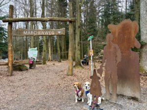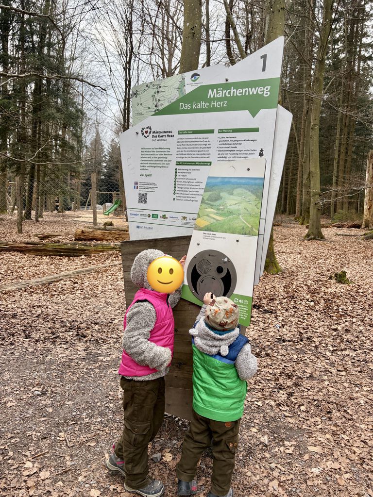 Unser Ziel war der Märchenpfad. Amira und meine Wenigkeit haben uns schon mal mit den Hauptfiguren von dem Märchen „Das kalte Herz“ vertraut gemacht.