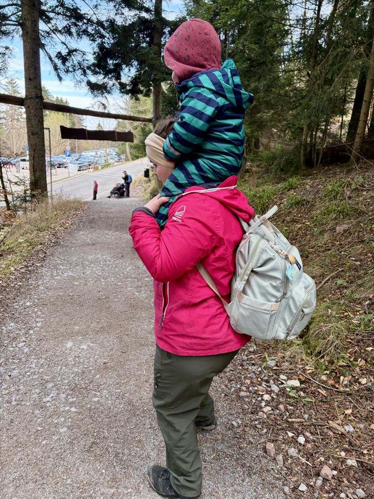Da war der Mächenweg schon wieder zu Ende. Der Jüngste durfte den Rückweg auf erhöhter Position genießen.