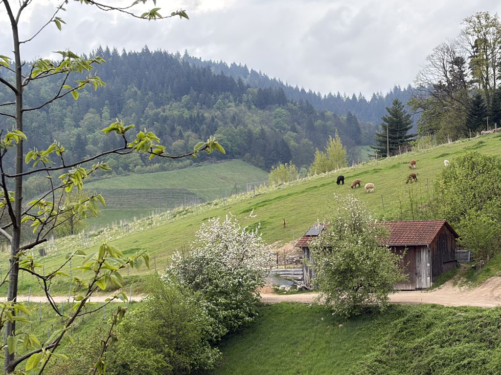 Frühling, Weitsicht bis über die Rheinebene und meine Wenigkeit – was ein schönes Bild!